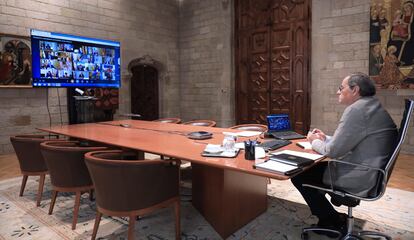 El presidente de la Generalitat, Quim Torra, ha afeado a ERC su acuerdo con el Gobierno central para votar en blanco la sexta prórroga del estado de alarma por la crisis del coronavirus. Apenas un día después de que los republicanos acordasen abstenerse en la votación que tendrá lugar en próximo miércoles en el Congreso de los Diputados, Torra se ha reafirmado en su rechazo a la prórroga del estado de alarma. Lo hizo primero en las redes sociales y se reafirmó tras la reunión con el presidente del Gobierno, Pedro Sánchez, en la cita que tiene cada domingo con los presidentes autonómicos. En un resumen de las ideas que ha defendido en esa reunión, Torra reclama de inmediato las competencias propias porque nunca ha existido la cogobernanza y entiende que Cataluña debería recuperar el mando “mañana mismo”, y no en fase 3 de la desescalada que es el acuerdo al que llegó ERC con el PSOE y extensivo al resto de las comunidades autónomas.