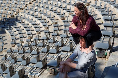 El Teatre Grec ya está preparado para la inauguración del festival de verano de Barcelona en formato de nueva normalidad, que como ha dicho esta mañana en el propio anfiteatro el director de la cita, Cesc Casadesús, es más bien una reinvención de la vida a la que estábamos acostumbrados. El espacio de Montjuïc presenta un aspecto inusual: se han retirado sillas hasta dejar las que quedan a un metro y medio de distancia unas de otras (eso permitirá seguir la función sin mascarilla) lo que hace omnipresente la piedra de las gradas originales. El aforo ha quedado reducido a unas 800 localidades y se tardará unos 35 minutos en entrar, con zonas de espera habilitadas y ocupación de las localidades por turnos. El espectáculo inaugural, que se estrena el día 30 en una función especial de apertura con el público compuesto por personal sanitario -invitado como reconocimiento a su esfuerzo durante la pandemia- y algunos políticos (están convocado los ministros de Cultura y Sanidad), es A tocar!, de Baró d’Evel, que repetirán la representación al día siguiente para una segunda inauguración más al uso.