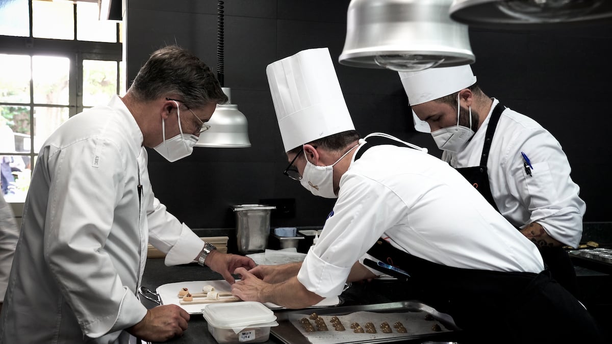 La pandemia de coronavirus ha dejado tocados muchos negocios en España. La restauración y la hostelería, por el cierre total de los establecimientos y la fuga del turismo, han sido de los sectores más afectados. Con la reapertura, estos establecimientos han tenido que reorganizar espacios y formas de trabajar, tanto en la cocina como en la sala. Aunque los restaurantes de alta cocina parten con ventaja, porque sus aforos y protocolos están a otro nivel, también han tenido que repensar el recibimiento a los comensales. El Celler de Can Roca, en Girona, fue de los primeros restaurantes con tres estrellas en cerrar y ha sido el primero en reabrir, el pasado 23 de junio. Los hermanos Roca han hecho una reflexión que les ha llevado a poner en valor su historia, con la apertura de Mas Marroch, un nuevo restaurante donde degustar los platos icónicos, y unos nuevos aperitivos para el menú del Celler que también echan la vista atrás.