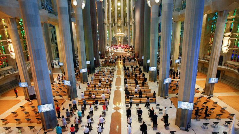 La misa por las víctimas del coronavirus que ofició el arzobispo de Barcelona reunió a varias docenas de personas en la basílica de la Sagrada Familia de Barcelona, donde todos los asistentes llevaban mascarilla y estaban sentados manteniendo la distancia, pero eran más de las 10 personas que establece como máximo una resolución del Procicat del pasado día 17 de este mes para las ceremonias religiosas.