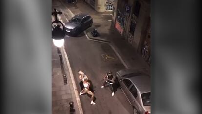 En las imágenes de lo sucedido, grabadas por una vecina del lugar, se escucha a los policías gritarle que se tire al suelo. Pero lejos de hacerlo, el hombre arremete contra los agentes con los puños en alto y les propina varios golpes. También se acerca al coche policial no logotipado e intenta llevárselo, pero no tenía las llaves puestas, según ha informado la policía catalana.