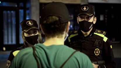EL PAÍS acompaña a una patrulla de la Guardia Urbana de Barcelona en la primera noche en que la policía sanciona al que no cumpla el confinamiento nocturno