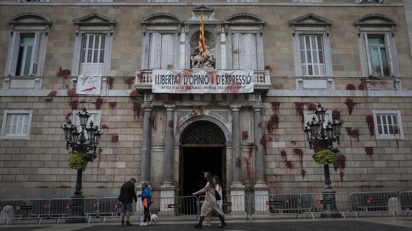 Los hechos han tenido lugar a las 11.30 en la plaza Sant Jaume, Una decena de personas se han concentrado exhibiendo una pancarta a favor del sector de la restauración y en contra de las medidas restrictivas impuestas para frenar la segunda ola del covid. Durante la acción, los manifestantes han reproducido música clásica por unos altavoces y han comenzado a lanzar globos rellenos de pintura contra la fachada del gobierno autonómico. También han lanzado pintura al suelo y atemorizado a algún fotógrafo para que no retratara los rostros de los autores del acto vandálico. La gamberrada se ha alargado varios minutos pero ningún agente de los Mossos ni de la Guardia Urbana han intentado detener el lanzamiento de globos.