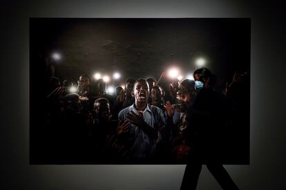 Temas como el cambio climático y la crisis medioambiental, el odio a nivel global, los problemas de género, la relación con la fauna salvaje y la protesta ciudadana, que son los protagonistas absolutos de las imágenes seleccionadas en esta edición. Como la gran ganadora, Straight Voica (voz firme o voz convencida) del japonés Yasuyoshi Chiba, tomada en Jartum, capital de Sudán, y publicada por France-Presse en la que puede verse a un joven de 15 años recitando un poema durante las manifestaciones contra el régimen rodeado de un grupo de personas que lo iluminan con sus móviles tras el corte del fluido eléctrico de los militares. “El jurado premió la foto por mostrar que la juventud tiene voz y rechaza las autoridades”, recordó Silvia Omedes, directora de Photographic Social Vision, fundación que lleva 16 años trayendo a Barcelona la muestra que se podrá visitar en Barcelona hasta el 20 de diciembre. “La misión de nuestra entidad es que el fotoperiodismo se reconozca como una herramienta fundamental en democracia”, dijo Omedes, que recordó que las imágenes son “veraces, de alta calidad y no manipuladas; necesarias poder llegar al ciudadano; una opinión crítica y veraz de lo que pasa en el mundo”.
