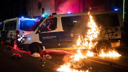 Un grupo de manifestantes ha incendiado una furgoneta de la unidad antidisturbios de la Guardia Urbana