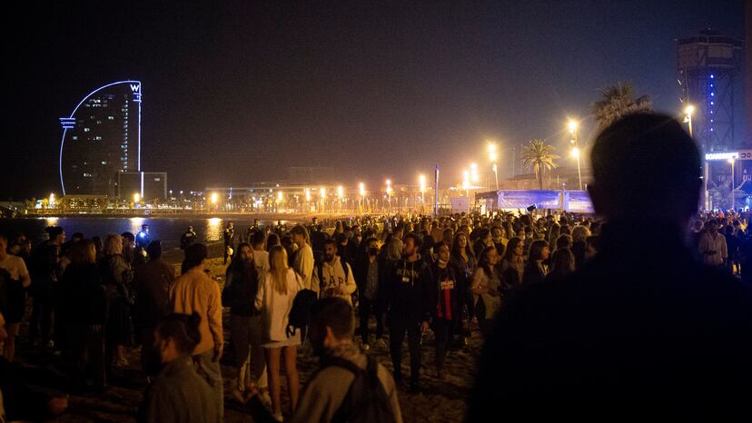 De repente llegó el ruido. Fue casi sin avisar, en el paseo marítimo de la Barceloneta. Pasaban pocos minutos de medianoche y la quietud de la noche se rompió. Fue un chillido corto, premeditado, de celebración por el fin del toque de queda. El silencio repetido de las noches de los últimos meses dejó paso a una celebración ciudadana. La noche despertó y los jóvenes recuperaron las plazas y las calles. Bienvenidos a la fiesta.