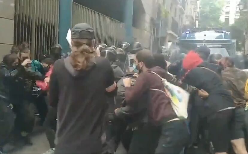 Un desahucio en el barrio del Raval, en el distrito de Ciutat Vella de Barcelona, ha concluido la mañana de este miércoles con cinco miembros del Sindicato de la Vivienda del Raval detenidos, dos policías heridos y decenas de activistas identificados entre los que se encuentra la diputada de la CUP Eulàlia Reguant.