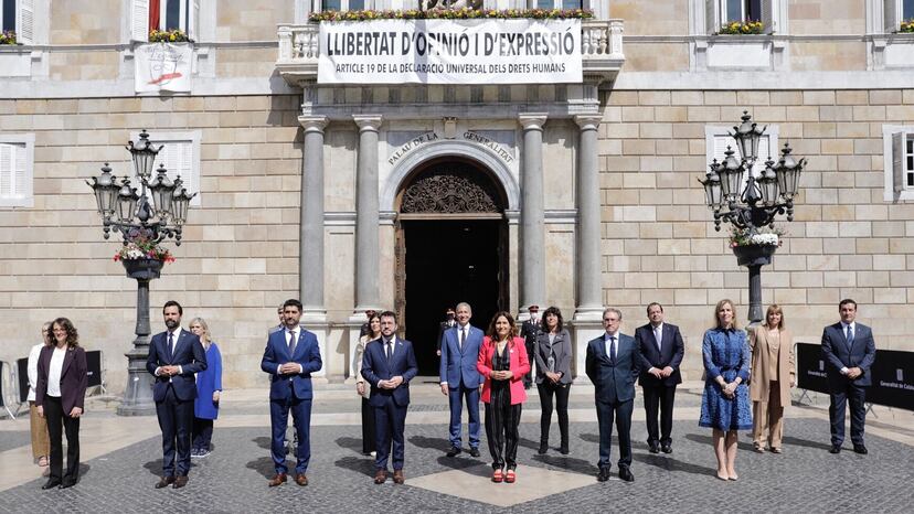 El poema Cançó de fer camí, de Maria Mercè Marçal y el canto de Els Segadors abrieron y coronaron la fugaz ceremonia de posesión este miércoles del nuevo Govern. El acto, de media hora, se celebró en el Saló Sant Jordi del Palau de la Generalitat ante 74 personas, entre ellas el Ejecutivo saliente y familiares de los políticos. Pere Aragonès, presidente de la Generalitat, se reafirmó en un breve discurso en que la resolución del conflicto soberanista pasa por la amnistía y la autodeterminación, omitiendo los indultos a los que se refirió abiertamente este martes el presidente del Gobierno Pedro Sánchez.