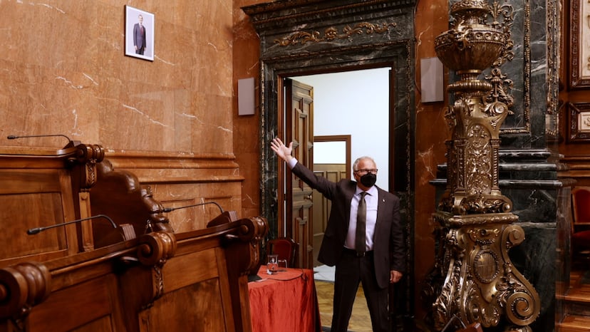 Colau coloca una imagen pequeña del Rey en la sala de plenos de Barcelona para cumplir con el Tribunal Supremo