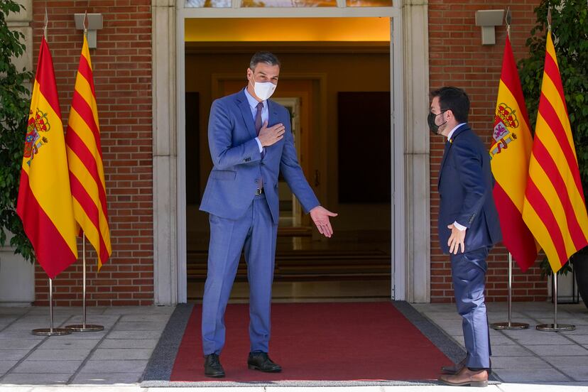La celebración, este lunes en Madrid, de la comisión bilateral Estado-Generalitat oficializa el inicio de la ruta de diálogo pactada entre los presidentes del Gobierno, Pedro Sánchez, y del Ejecutivo catalán, Pere Aragonès, en junio. En el encuentro se acordará el traspaso de becas y se amarrarán inversiones ferroviarias largamente reivindicadas por el Govern, entre otros. En un escenario distinto, Barcelona, y con la pausa estival de por medio, se celebrará la mesa que abordará el encaje territorial de Cataluña. La agitación política de la semana deja en evidencia que hay detractores dispuestos a hacerlo saltar todo por los aires. Pero, a pesar incluso de las contradicciones internas, ambas partes trabajan discretamente para blindarlo.