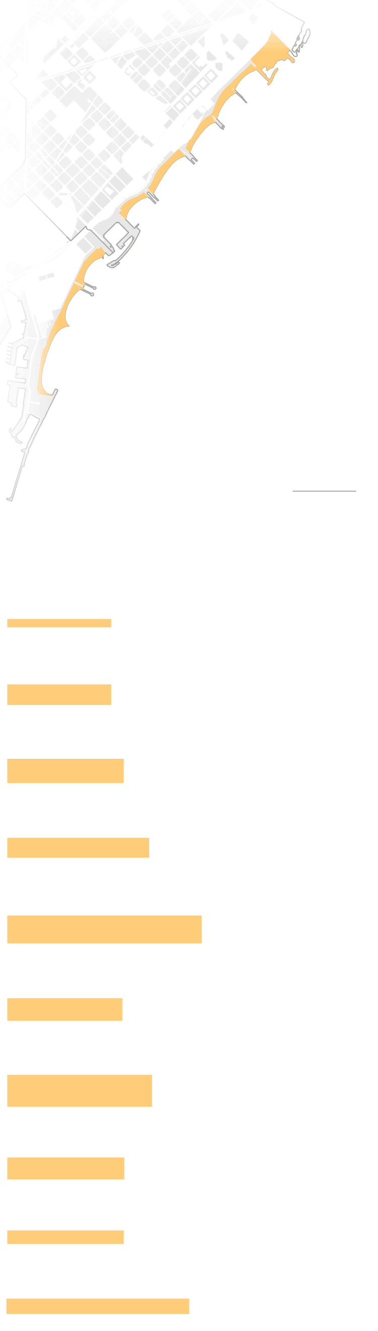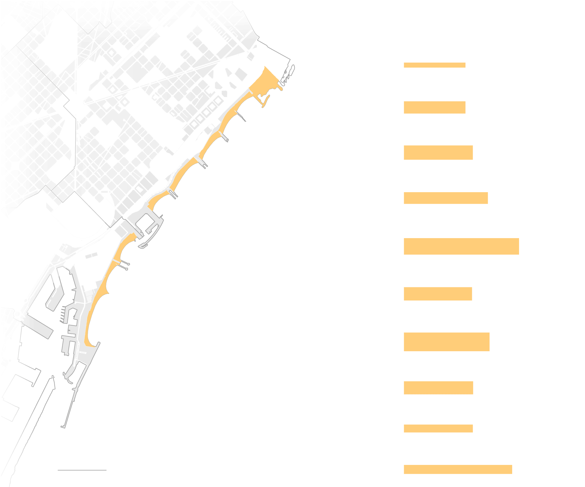 Pero lo que realmente caracteriza a la ciudad de Barcelona son sus playas distribuidas en los cinco kilómetros del litoral de la capital catalana. Nueve playas y una zona de baño, los baños del Fòrum, donde no hay arena y el acceso al agua se realiza directamente desde superficies pavimentadas mediante escaleras. Este 2021 el Ayuntamiento de Ada Colau ha tramitado un decreto de alcaldía para, como prueba piloto, declarar “playas sin humo” –donde no se puede fumar- a Sant Miquel, Somorrostro, Nova Icària y Nova Mar Bell. Además, en la parte norte de la playa de Llevant se sitúa desde 2016 una zona donde se permite el acceso a los perros y que popularmente se ha bautizado como: La playa de perros.
