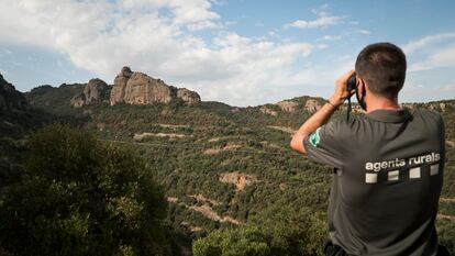 A base de observar bosques y más bosques con sus anteojos, la ambientóloga del Centro de Investigación Ecológica y Aplicaciones Forestales (CREAF) Mireia Banqué ha desarrollado una afilada mirada con la que, en cuestión de segundos, es capaz de determinar el porcentaje de diferentes tipos de árboles que se extienden a sus pies. “Un 90% de encinas… y un 10% de pinos, aproximadamente. ¿Vosotros cómo lo veis?”, pregunta desde un collado del Parque Natural de Sant Llorenç del Munt i l’Obac (Bages) a dos miembros de Agents Rurals.