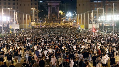 La plaza de Espanya, con todo, no fue el único lugar de botellón en la ciudad. También, y por segunda noche, centenares de personas se concentraron frente a la plaza del Museu d’Art Contemporani de Barcelona (MACBA). “Hemos estado dos años en casa. Cuando vemos los botellones en televisión siempre nos escandalizamos, pero la gente sigue saliendo, no nos abren las discotecas. Si me dejaran pagar mi entrada y mi test de antígenos lo haría. Esto es un desmadre, lo reconozco”, explicaba una joven de 25 años, que no quiso dar su nombre, sentada junto al Macba. En un comunicado de la Federación Catalana de Locales de Ocio Nocturno (Fecanol) lamentó esta semana que sin volver al horario normal, “no se podrán combatir los graves problemas de altercados públicos que se están dando, especialmente, en Cataluña”.