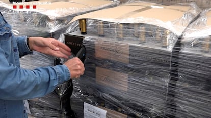 Se han localizado más de 3,2 millones de etiquetas falsas y, en los almacenes de la empresa, los Mossos inmovilizaron 1.100 palés, con más de 750.000 botellas.