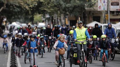 La iniciativa de familias que pedealean juntas para ir a la escuela ocupando el asfalto se extiende en la capital catalana