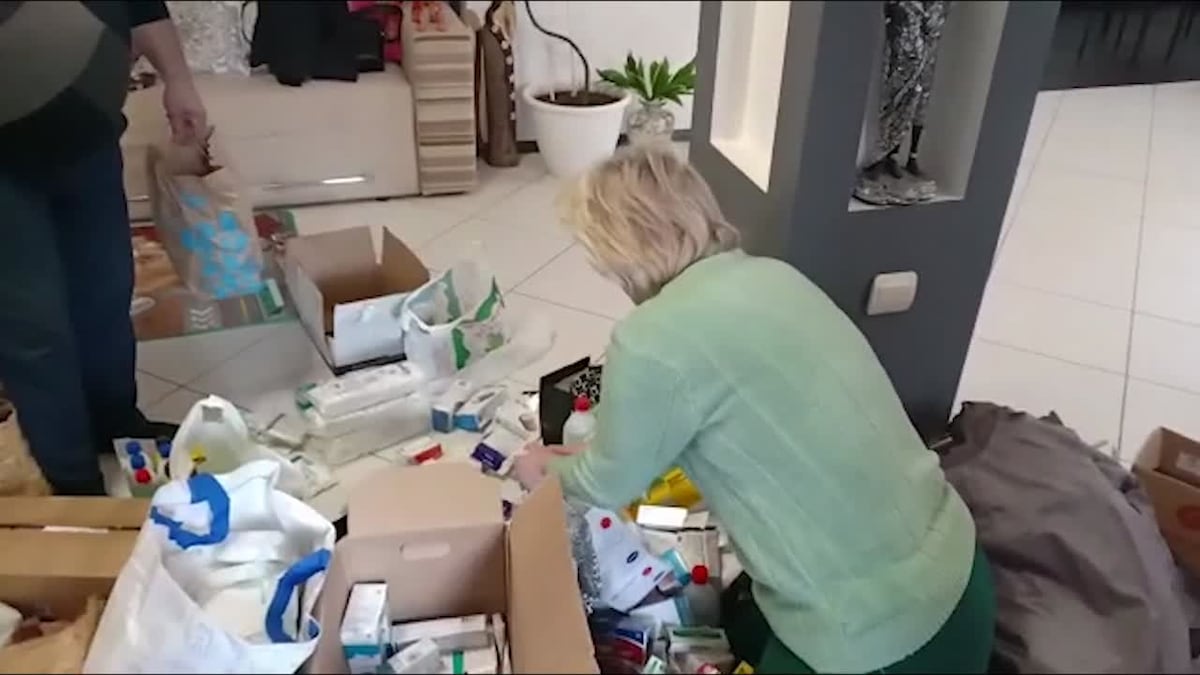 Los seis voluntarios que se fueron al frente en una furgoneta se distribuyen por distintas ciudades y reparten la ropa y los medicamentos que cargaban