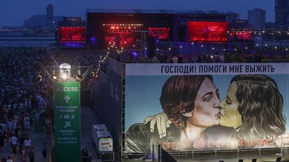 Ingleses sacudiéndose a primera hora de la tarde unas paellas sintéticas servidas por camareros orientales en bares de barrio. Más ingleses bebiendo las primeras cervezas y departiendo amigablemente a la sombra de una terraza. El metro vomitando lenguas interminables de público ataviado de manera deportiva, como para correr una carrera amateur. Sí, podría evocarse aquello de “como decíamos ayer”. Tras dos años con estas escenas en el olvido, ayer se puede decir que con la primera jornada del Primavera Sound comenzó la temporada de los festivales XXL, esos que juegan en las ligas de las cifras desmesuradas y las distancias inacabables. Caía el sol moderadamente, por suerte la climatología regalaba una suave brisa, y las colas ya se formaban en los accesos, que pese a engullirlas con rapidez no podían evitar su crecimiento. Parecía haber tantas ganas que todo el mundo quería estar en el recinto del Fórum antes de la hora del té. Sí, como decíamos ayer, pero con más ganas aún que ayer.