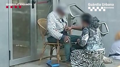 Las imágenes grabadas por la policía hablan por sí solas: el hombre, sentado en una silla, y una mujer vaciándole los bolsillos. En otras, se le puede ver entre los coches, en plena circulación, renqueando, e incluso vestido de Papá Noel. “Les daban bastante alcohol para poder registrarlos y quitarles sin problema el dinero. No podían esconderse nada, ni una moneda, si no, les agredían”, explica el cabo de los Mossos David Anera, en rueda de prensa sobre la investigación conjunta de los dos cuerpos.
