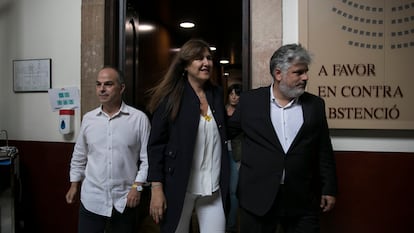 Laura Borràs es a todos los efectos presidenta de Junts per Catalunya, una formación con unos 6.000 afiliados; que ocupa la mitad de cargos de la primera línea de la Generalitat y con más alcaldes (especialmente en pueblos pequeños). Y hasta ahora, sus copartidarios no la han dejado sola en público. No solo en las fotos, tampoco en el papel. Hace un par de semanas, el partido de Carles Puigdemont cambió la ponencia política para dejar claro que la expulsión de las filas de uno de sus miembros solo puede ocurrir si hay una sentencia firme por un caso relacionado por corrupción. Y ni eso: deja la puerta abierta, a la medida, para que una comisión de garantías investigue si el fallo puede enmarcarse dentro de un episodio de lawfare (persecución judicial).