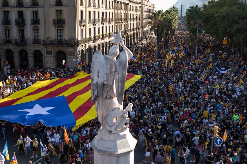 El desgaste tras una década de procés independentista ha quedado retratado este domingo, durante la manifestación independentista que convoca la Assemblea Nacional Catalana (ANC). El proceso de alejamiento entre los partidos políticos, las entidades y los ciudadanos más movilizados por la secesión parece acercarse a su límite, y la marcha, que supuestamente buscaba espolear al Ejecutivo catalán para hacer efectivo el mandato independentista del referéndum ilegal del 1-O, ha terminado al grito de “Govern, dimisión”. Ese clamor se ha extendido entre los asistentes después de que la líder de la ANC, Dolors Feliu, planteara en su discurso una disyuntiva a ERC y a Junts per Catalunya: “O hacéis la independencia o convocáis elecciones”. Los organizadores han calculado que 700.000 personas han participado en la convocatoria, una cifra que la Guardia Urbana ha rebajado hasta las 150.000.
