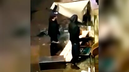 Los incidentes más graves se alargaron hasta las cinco y media de la mañana, según el Consistorio, pero los vecinos aseguran que a las seis todavía había carreras, en las que un grupo incluso desafiaba a los agentes. Y a los vecinos, pese a las advertencias de que los estaban grabando desde los balcones. “¡Os estamos grabando!”, gritaban unos. “¡Nos la suda!” respondían los otros, según el relato de una vecina que vive a tres puertas de la charcutería La Muntanya, en la Creu Coberta.