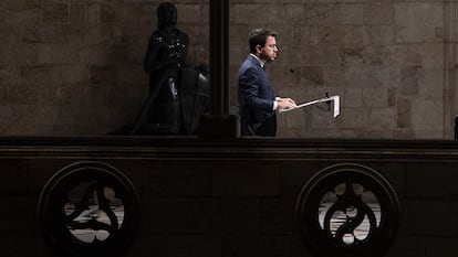 “El cese del vicepresidente es un paso que me duele, pero del todo necesario para fortalecer al Govern”, ha argumentado Aragonès en su solemne comparecencia en la Galería Gótica del Palau, desde donde también ha invitado a la cúpula de Junts a buscar como reemplazo un perfil que ayude a “rehacer confianzas que en estos momentos están en cuestión”. Eso sí, ha dejado claro que mantiene el apoyo a los seis consejeros de Junts que, de momento, se mantienen. “La lealtad que importa es la lealtad a Cataluña”, tuiteó desde Bruselas el padre de Junts, el eurodiputado y expresident Carles Puigdemont.