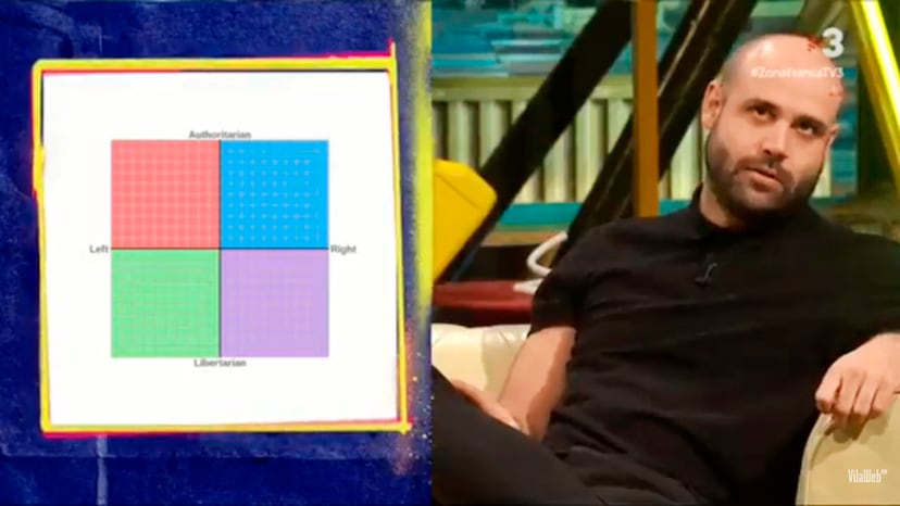 La sección de Manel Vidal en el late night que presenta Joel Díaz consistía en una sátira política en forma de consultorio. En su sección de esta semana, el humorista pretendía situar las diferentes opciones políticas en un diagrama con las variables “autoritario/libertario” e “izquierda/derecha”. A la hora de situar a un “votante del PSC” lo hizo en la parte de arriba a la derecha. Lo que ha provocado la polémica y ha indignado a los consejeros de la Corporación Catalana de Medios Audiovisuales nombrados a propuesta de los socialistas es que, al hablar de los votantes del PSC, el gráfico se convirtió en un dibujo con forma de esvástica.