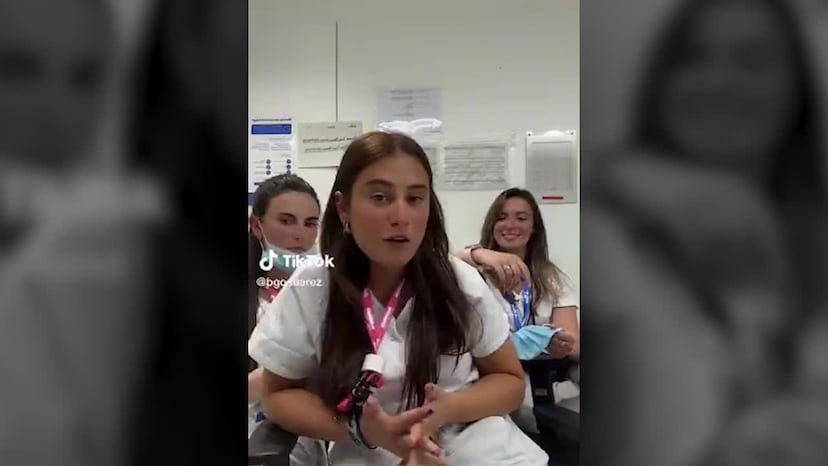 Begoña Suárez inicia su grabación junto a dos compañeras más en el interior del hospital, todas sin la mascarilla obligatoria. “Yo soy de Cádiz, y ellas de Granada y San Sebastián”, concreta. Remarca que están trabajando en Barcelona y que un sindicato les ha informado sobre qué necesitan para conseguir una plaza en el sistema público. “Nos dicen que sacan 3.500 plazas y que este será nuestro año, pero para sacarnos las putas oposiciones tenemos que sacarnos el puto [nivel] C1 de catalán”. Justo en este momento, una de sus compañeras, Clara, verbaliza que se ha apuntado a estudiar catalán, a lo que Begoña Suárez, suelta: “¿Te has apuntado? Clara, me estás desmontando el vídeo, tía”. La enfermera insiste. “Se va a sacar el C1 de catalán mi madre, porque yo no”. Cuando Clara empieza a hablar catalán con una cuarta persona que no aparece en el vídeo, Begoña se lo afea: “¿Puedes parar de hablar catalán, por favor?”.