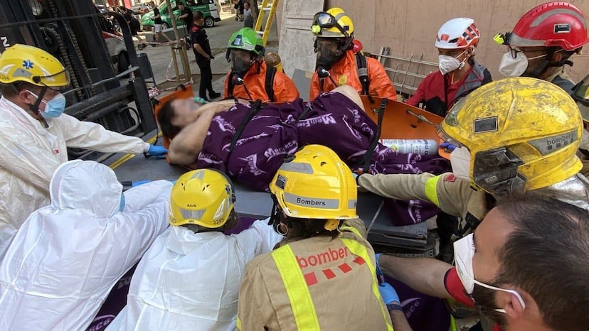 El rescate ha durado en total siete horas. Desde las ocho y media, con una excavadora y a través de la ventana, los bomberos han ido retirando las bolsas, plásticos, cajas y demás basura acumulada en el domicilio del hombre, que presuntamente padece el síndrome de Diógenes. Finalmente, a mediodía, los especialistas llegaron hasta él, tal y como ha avanzado la periodista Anna Punsí. Después de comprobar que estaba bien y colocarle oxígeno, por las dificultades que tenía para respirar, los bomberos han iniciado las maniobras de rescate, que han culminado pasadas las tres de la tarde, cuando han logrado con un montacargas sacarlo de la vivienda a través de la ventana. Los bomberos han intervenido con mascarillas y trajes de riesgo biológico. Fuentes policiales añaden que nunca habían actuado en una situación tan extrema.