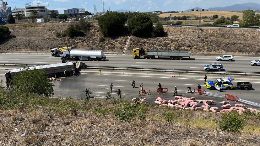 Un accidente de un camión cargado con cerdos provoca hasta 14 km de cola en la AP-7