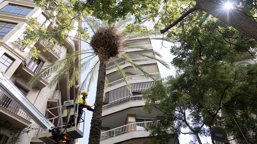 Parques y Jardines revisa 912 palmeras que se sospecha que pueden ser peligrosas y riega los árboles. El estrés hídrico, posible causa del accidente