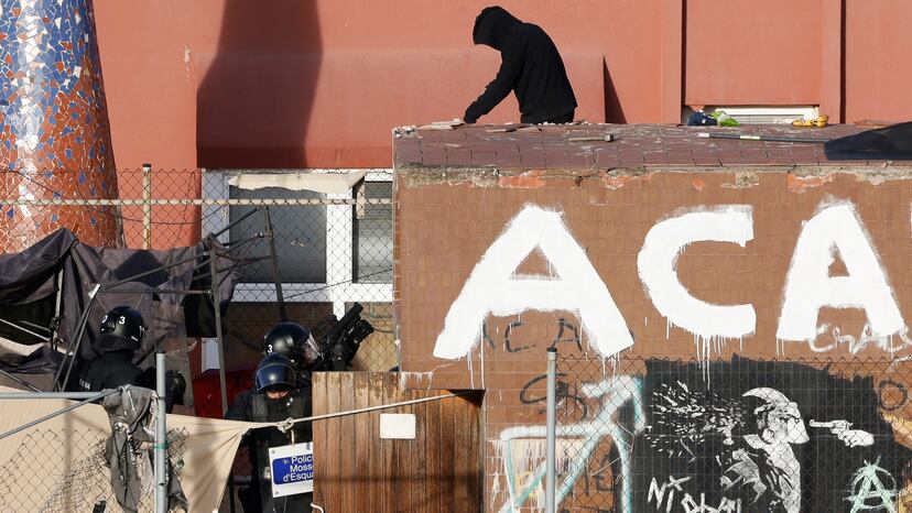 Pero lejos de lo que creían -los Mossos habían preparado un dispositivo de máximos, con más de 300 agentes movilizados y el temor de disturbios en la ciudad- el desalojo fue lento pero sin incidentes graves. Dentro de La Ruïna y El Kubo no se encontraron trampas electrificadas, agujeros u otros cepos para dificultar el desalojo. Los okupas habían preparado una respuesta clásica, con la fortificación de la entrada, lo que obligó a la policía a usar incluso radiales para acceder al edificio. “Poco a poco”, repetían fuentes policiales. Afianzado el patio, con varias idas y venidas por las lluvias de piedra y runa que les lanzaban, tomaron el interior de las casas. La policía caminó con precaución y tuvo que escalar hasta los pisos superiores porque, según fuentes policiales, habían destruido buena parte de las escaleras.