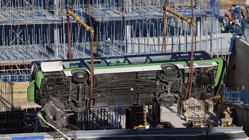 Un herido crítico en el accidente de un autobús con 25 pasajeros que ha caído en el interior de unas obras en Esplugues