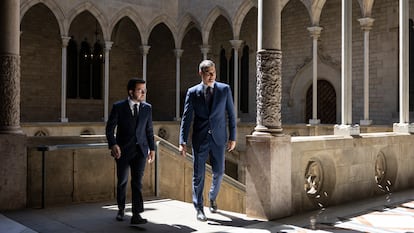 “Los dos presidentes han analizado el desarrollo de estos acuerdos y se han comprometido a trabajar para culminar su cumplimiento en beneficio de la ciudadanía de Cataluña”, dice la nota con la que este miércoles tanto el Gobierno central como el de la Generalitat informaron del encuentro de una hora de duración. Ambas partes evitaron en todo momento relacionar la reunión con las negociaciones de la investidura. La inédita puesta en escena de la firma del traspaso de la gestión del Ingreso Mínimo Vital —no hubo algo equiparable cuando se desplegaron los Mossos o la Generalitat asumió las competencias de Tráfico— era la foto que faltaba para ilustrar el relato de unos socialistas que cumplen con sus compromisos. El IMV fue aprobado por el Congreso en diciembre de 2021 y ERC puso como condición para apoyar los Presupuestos de ese año su traspaso al Govern.