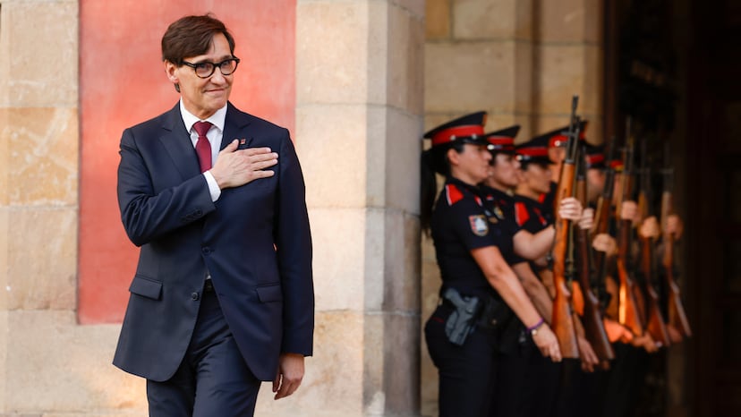 Tras ser nombrado, Illa ha estrechado la mano a dos de los negociadores de ERC que han hecho posible su investidura, Josep Maria Jové y Marta Vilalta, y después ha ido a buscar a su ya predecesor Pere Aragonès, a Jéssica Albiach, líder de los comunes, Albert Batet (Junts) y Alejandro Fernández (PP). “Intentaré estar a la altura de las circunstancias: gobernaré para todo el mundo, atendiendo con pluralidad y respeto. Solo saldremos de esta todos juntos. Me tienen a su servicio. Empezamos el camino”, ha afirmado el president en un contenido mensaje. 14 años después, el PSC regresa al Palau consciente de su debilidad y de que necesitará ir de la mano de ERC y de los comunes para transitar en esta legislatura. La mayoría de Illa es más enclenque que la de Pedro Sánchez, que tiene un margen de siete votos. El nuevo president no tiene ninguno. Tiene los 68 clavados del umbral de la mayoría absoluta. El socialista no ha negado esa realidad y ha insistido en que asume como propios el contenido de los dos pactos que son de investidura y no legislatura. Sus propuestas estrella son el nuevo modelo de financiación, que tantas suspicacias ha levantado en otros dirigentes socialistas y que Illa asegura que no perjudican a nadie porque garantiza la solidaridad, y las políticas de vivienda que prevén construir 50.000 pisos de alquiler social.