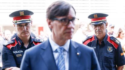 La visita a Egara no solo se explica por el hecho de que la seguridad sea una de las obsesiones del nuevo Govern, sino también por la situación crítica en que han quedado los Mossos desde el pasado 8 de agosto. Después de siete años huido, Carles Puigdemont regresó a Cataluña consciente de que sobre él pesaba una orden de detención nacional emitida por el juez Pablo Llarena, que lo mantiene procesado por malversación en el procés. La policía catalana diseñó un operativo con más de 600 agentes en torno al Parlament para garantizar la sesión de investidura —que se celebró sin incidentes y convirtió a Illa en president— y, al mismo tiempo, la detención de Puigdemont. Esta no fue posible porque, tras hablar ante miles de personas en un escenario en el Arc de Triomf, en pleno centro de Barcelona, el líder de Junts se dio a la fuga en un coche con el asesoramiento previo, supuestamente, de tres agentes de la policía catalana.
