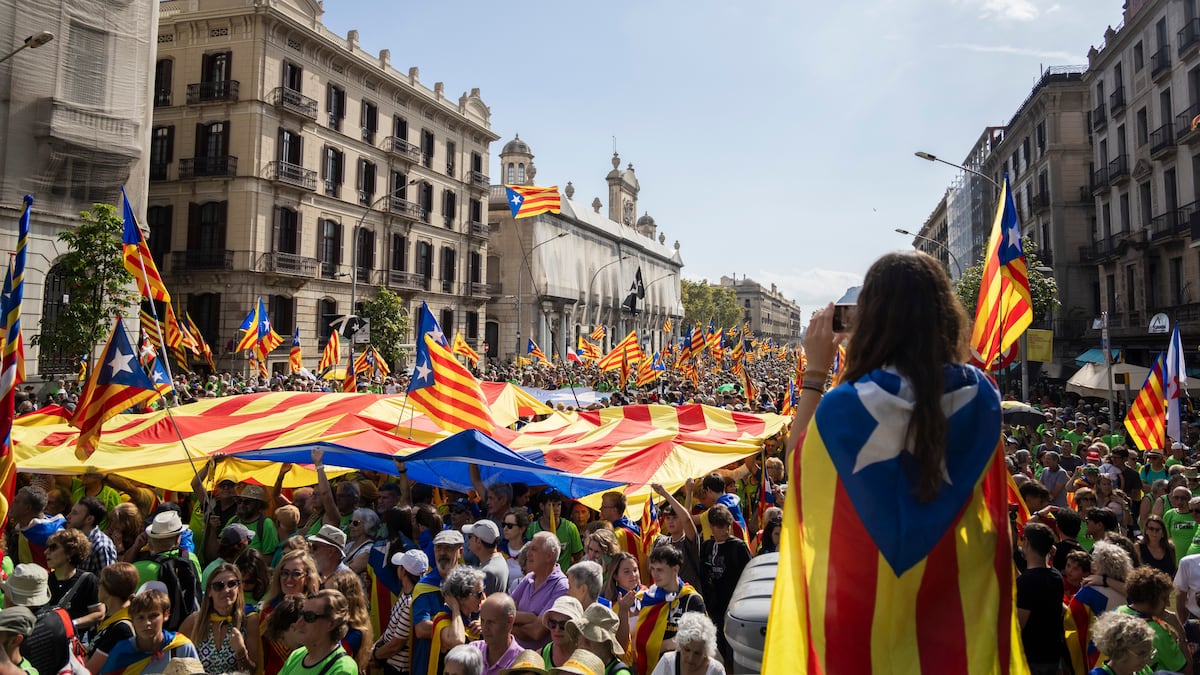 Por otro, la llegada de Salvador Illa a la presidencia de la Generalitat terminó por enterrar cualquier tipo de complicidad con los organizadores de una manifestación que, según la propia Guardia Urbana, llegó a reunir 1,8 millones de personas en 2014 —la V de victoria en la Diagonal y Gran Vía— o 115.000 el año pasado en Barcelona. El president y su partido, el PSC, se han encargado de descafeinar la efeméride de cualquier lectura beligerante con el Gobierno central para poner el foco en que se trata de una fiesta “para todos”.