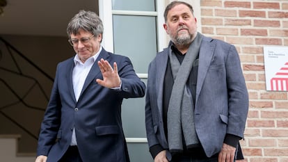 Oriol Junqueras y Carles Puigdemont buscan reimpulsar el independentismo en Cataluña. Los líderes de Esquerra y Junts, protagontas principales de la década del procés, han acordado este jueves en Bruselas en su primera reunión desde que recupararon ambos el liderazgo de sus partidos, “coordinar” estrategias para recomponer el movimiento. La reunión, celebrada en la denominada Casa de la República, en Waterloo, es también el primer paso para el deshielo en las relaciones personales de ambos líderes, muy tocada desde 2017. “Este encuentro se enmarca en la necesaria e imprescindible relación entre dos partidos independentistas que, pese a las diferencias, tienen muchos objetivos compartidos”, han reivindicado Junts y ERC tras la reunión.