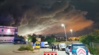 Los efectos del incendio en una nave industrial en Vilanova i la Geltrú obligó a Protección Civil a tomar la medida durante siete hora