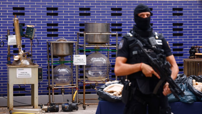 “Al final, solo tienes que poner en Amazon ‘reactor encamisado’ y comprarlo”, resume el inspector jefe de la Policía Nacional Alejandro Martín, sobre la dificultad que conlleva poner en marcha un laboratorio de fabricación de drogas. A sus espaldas, lucen reactores y destiladores que hasta hace solo unas semanas funcionaban a pleno rendimiento en una nave industrial en Amposta (Tarragona). Delante, en sacas abiertas, y protegidas por agentes de los GOE, están los 580 kilos de MDMA que fabricaron con ellos siguiendo la receta y que ahora se exhiben en el patio de la comisaría central de la Policía Nacional en Cataluña. Los investigadores calculan que sus cocineros producían 100 kilos de la droga sintética a la semana, que luego trasladaban ocultas en cajoneras a Europa. El líder del grupo, un hombre holandés de 35 años, detenido en mayo, tiene vínculos con la Mocro Maffia, según fuentes policiales.