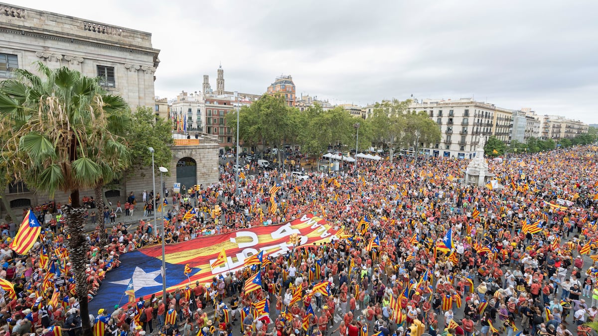 El lema “Independencia, más motivos que nunca” se estampa en las camisetas rojas que visten buena parte de los manifestantes. Minutos antes de las cinco, un desfile de motocicletas ha ocupado la avenida principal entre estruendos de bocinas y motores. Una de las banderas llevadas por ANC exhibe “La vostra normalitat és la nostra resistència. Aquí no s’ha acabat res!” (Vuestra normalidad es nuestra resistencia. Aquí no se ha acabado nada).