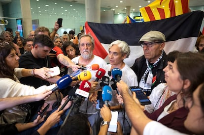 Un chándal gris y una camiseta blanca, gastados. Fue el uniforme que las autoridades israelíes dieron a los miembros de la flotilla humanitaria de Gaza tras interceptarlos en aguas internacionales, el pasado día uno, y llevarles a la prisión de Ketziot a la espera de deportarles. Es la misma ropa con la que dos de los participantes de esa acción humanitaria, la exalcaldesa de Barcelona Ada Colau y el regidor de esa misma ciudad por Esquerra, Jordi Coronas, han llegado este domingo al Aeropuerto de El Prat de la capital catalana. “Nos han secuestrado, nos han maltratado, pero no es nada comparado con lo que sufre el pueblo palestino”, ha resumido Colau. “Esta misión no acaba hasta que vuelvan todos los compañeros”, ha añadido el republicano. Ambos han pedido que la movilización ciudadana continúe para frenar el genocidio.