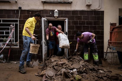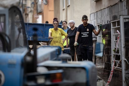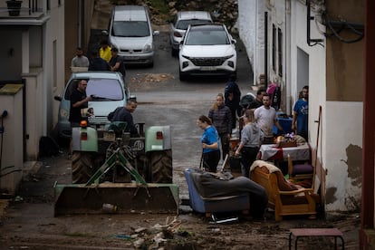 En lo alto del techo de un Toyota plateado, una sillita infantil de seguridad. La recoge Albert, padre de un bebé de 11 meses, que anda agobiado hablando por teléfono con la compañía aseguradora. “Es mi coche y, el de delante, es el de mi pareja. Lo compramos hace un mes”, dice, señalando un Audi blanco. “Estamos todos bien, y eso es lo que cuenta”, indica con aplomo. Los daños son mayúsculos tras un fin de semana de nubes negras, pero en la ausencia de víctimas y de desaparecidos se cuela la luz.