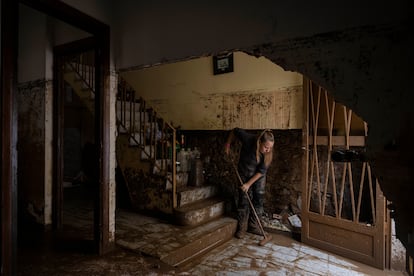 Araceli Villalbí es concejal en el Ayuntamiento de Godall. Vive en una casa del centro del pueblo, en una esquina donde el remolino de agua enroscaba con más fuerza. La riada se comió la planta baja de su vivienda. Ella se refugió en los pisos de arriba, junto a su perro y sus gatos. Horas después del susto, seguía con la angustia metida en el cuerpo. “Me temblaban tanto las manos que no pude ni grabar un vídeo”, cuenta, sin despegarse del teléfono móvil. Explica que, por razones de seguridad, no puede regresar a su casa porque se desconoce si la fuerza del agua puede haber afectado la estructura y ablandado los cimientos.