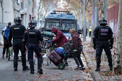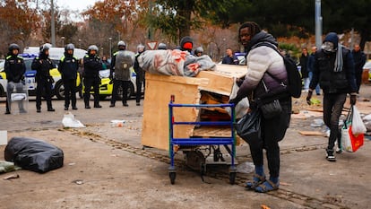 El B9, un antiguo instituto de Badalona, ha sido lo más parecido a una casa para cientos de migrantes. Forzados siempre a moverse a golpe de desalojo —de asentamiento a nave, de nave a local—, habían encontrado en las viejas aulas de secundaria un refugio más o menos estable. Pero nada es para siempre. Después de más de dos años allí, retoman el itinerario de la miseria. El miércoles, el Ayuntamiento de Badalona ejecutó con la bendición judicial uno de los mayores desalojos colectivos de España, y eso que ya solo quedaban la mitad de las 400 personas que convirtieron el B9 en el mayor asentamiento informal de Cataluña, un pueblo autónomo dentro de la ciudad. La inmensa mayoría ha quedado en la calle, sin ninguna alternativa por parte de los poderes públicos y sin que eso parezca importarle demasiado a las administraciones, empezando por la local, que ha abordado el asunto como un problema de delincuencia.
