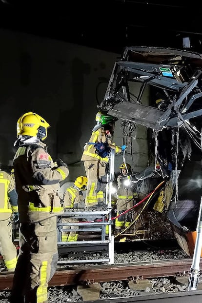 Bomberos de Cataluña examina el convoy de Rodalíes, este miércoles.Albert GarciaUn grupo de bomberos examina el tren siniestrado en Gelida (Barcelona), este miércoles.Albert GarciaÁlvaro Fernández Heredia, presidente de Renfe, visita la zona del accidente. Albert GarciaBomberos de la Generalitat de Cataluña inspeccionan el tren siniestrado.Albert GarciaVarios bomberos trabajan en la zona cero del accidente de tren ocurrido el martes en Gelida (Barcelona).ALBERT GARCIADetalle del tren de Rodalies, este miércoles, en Gelida (Barcelona).Albert GarciaUn bombero de la Generalitat de Cataluña trabaja en la zona del accidente ferroviario, este miércoles. Albert GarciaLos bomberos trabajan en el lugar del accidente de un tren de la línea 4 de Rodalies que chocó con un muro de contención que ha caído a la vía entre Gelida y Sant Sadurní d'Anoia (Barcelona). ALBERT GARCIAVista del tren tras el impacto contra el muro de contención.