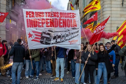 El independentismo reúne a 8.000 personas y las plataformas de usuarios a otras 3.000 en dos protestas para exigir mejoras en el servicio ferroviario