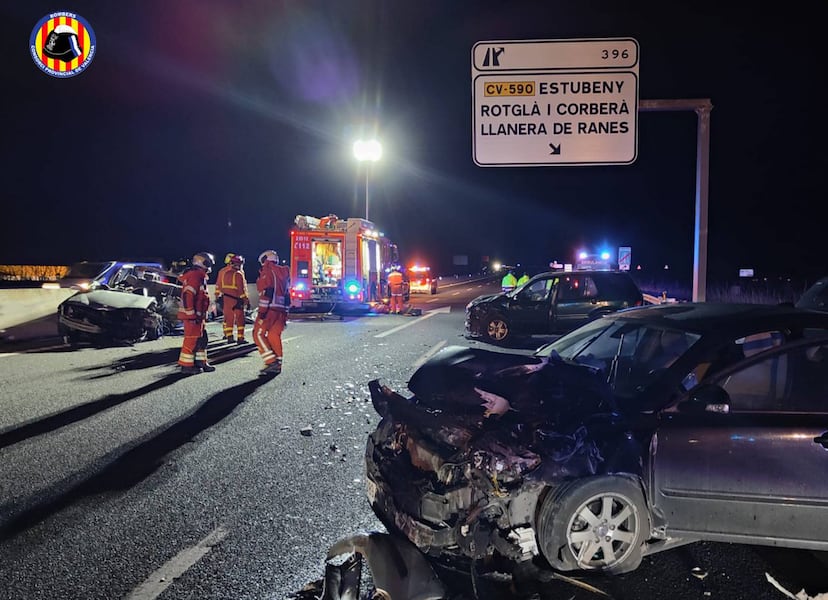 El siniestro tuvo lugar en el kilómetro 395 de la citada autovía en sentido Alicante y la gravedad del accidente obligó a cortar la circulación en esa dirección, por lo que el tráfico fue desviado por la salida 395, a la altura de Xàtiva. Hasta el lugar se desplazaron tres dotaciones de bomberos de Alzira y Xàtiva, que lograron excarcelar a dos de las víctimas.