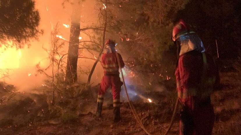 El fuego, provocado por un rayo el domingo, estaba estabilizado hasta que el viento lo reactivó este lunes y se desbordó en el municipio valenciano