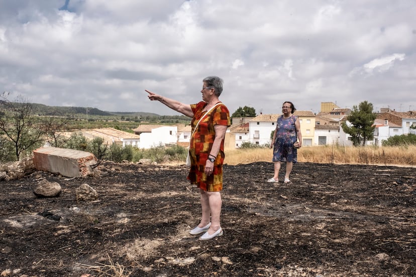 “Tenemos un cabreo monumental, es desolador ver que tu vida se quema y no puedes hacer nada. Más todavía si no se actúa a tiempo”, asegura Pilar Martínez (67 años) mientras recorre con su amiga Elena Pardo (72 años) las afueras de la pedanía. El suelo, completamente calcinado ,desprende todavía el calor de las llamas. “Llevo unos días nada más que llorando. Con valium para tranquilizarme y sin poder dormir”, sentencia.